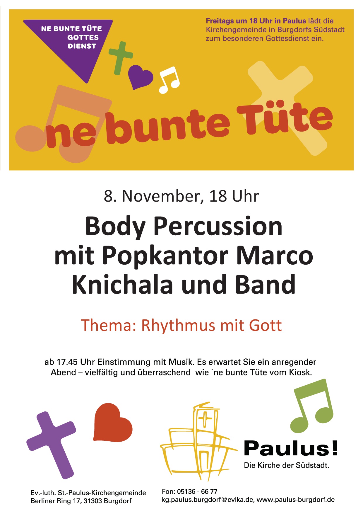 Thema: Rhythmus mit Gott, Musik: Body Percussion mit Popkantor Marco Knichala und Band