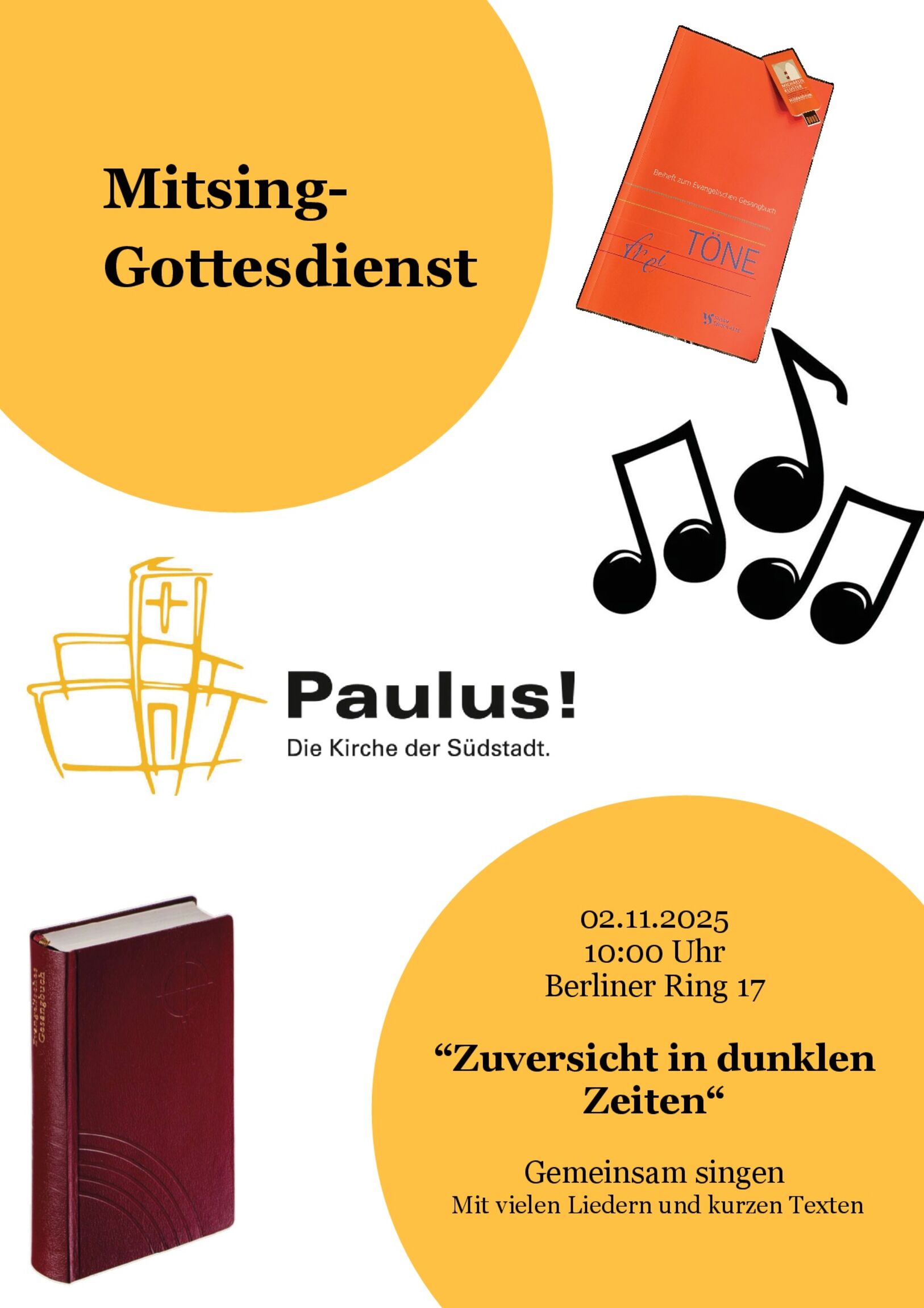 Mitsing-Gottesdienst am 2. November um 10 Uhr im Paulus-Kirchenzentrum